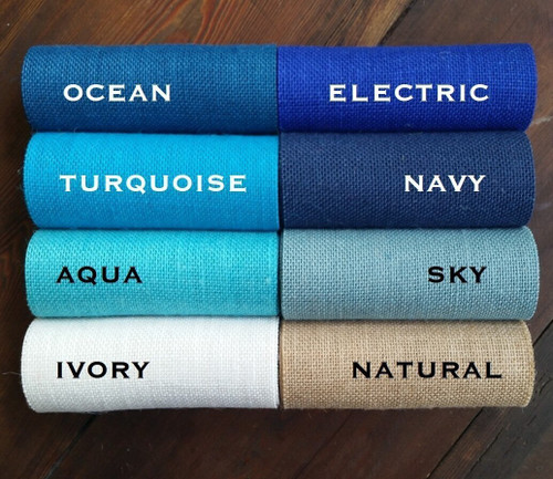 Premium Sultana burlap fabric yardage in TURQUOISE. Sultana burlap is more tightly woven and a much better quality than craft grade burlap.